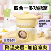 卡通马卡龙色带帽仓鼠陶瓷窝金丝熊躲避屋夏天降温可拆冰袋小宠窝