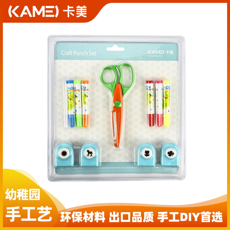 卡美打孔款压花器3件套儿童手工DIY压花剪纸打花器跨境电商专供