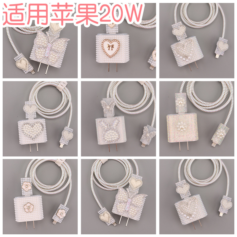 适用苹果20w数据线保护套绕线器手机五件套iphone充电器头保护壳