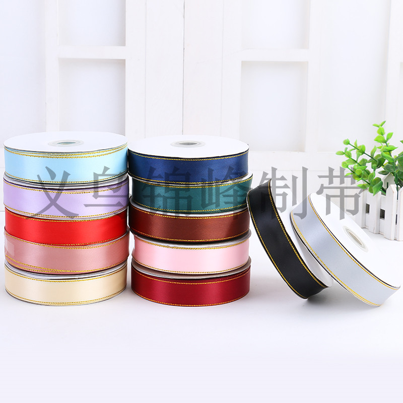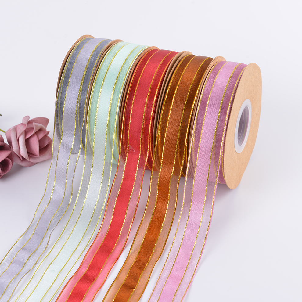 厂家直销 彩色四金边中缎边网雪纱带 鲜花烘焙透明彩带缎带织带