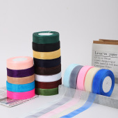 2.5cm宽半缎半网纱织带发饰手工diy丝带花艺礼盒绑带节日礼物缎带