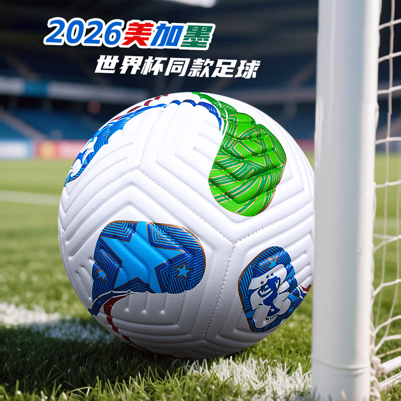 2026机缝足球世界杯款美加墨5号PU比赛训练PVC防爆足球批发