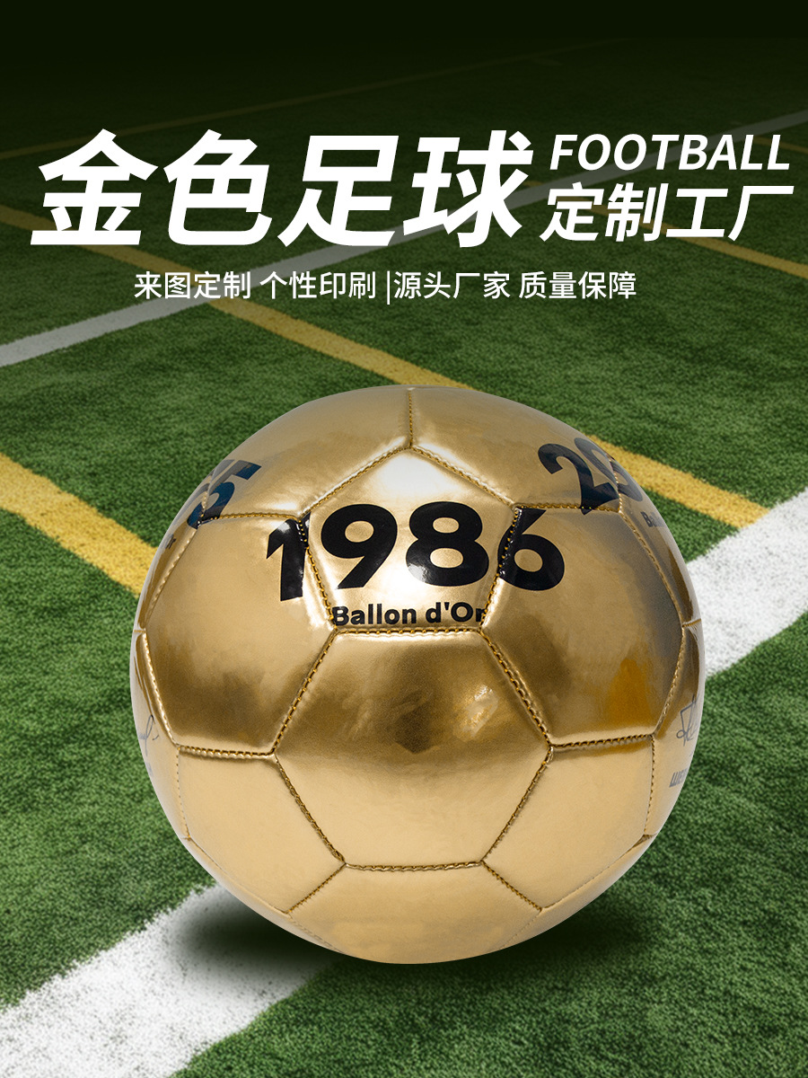 金色皮料足球5号球学校防爆4号PU机缝训练球镭射皮料批发贴牌定制