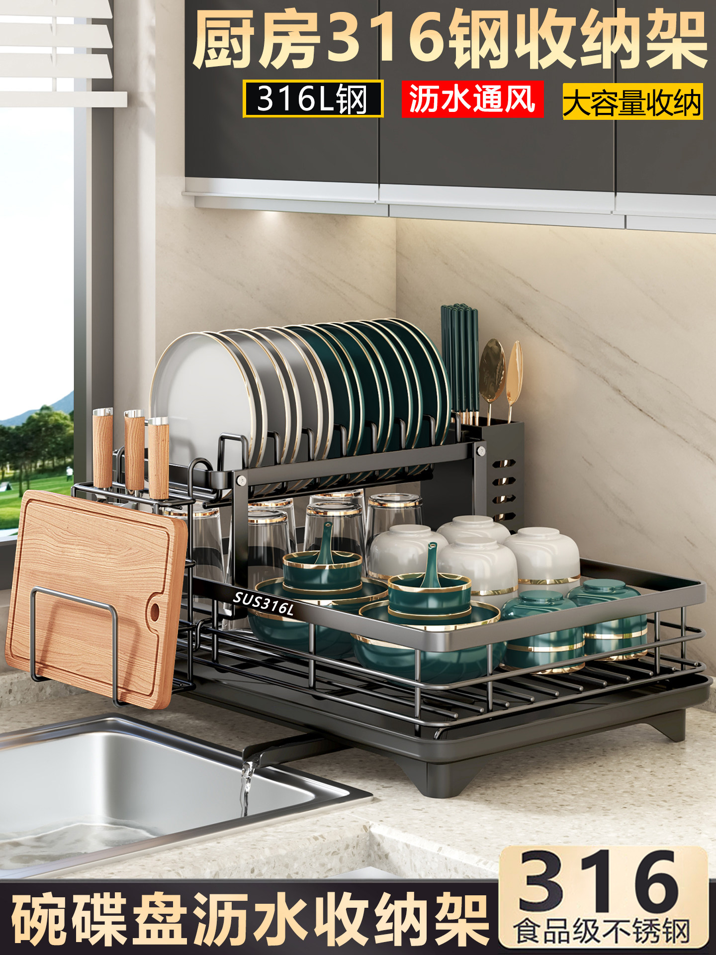 厨房置物架碗碟沥水架多层碗架家用台面碗柜碗筷刀具多功能收纳架