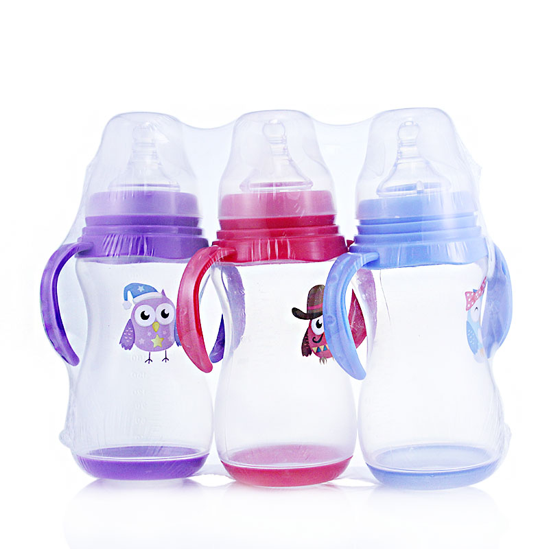 280mL带柄塑料奶瓶 喂养用品标口婴儿奶瓶 PP宝宝奶瓶厂家批发
