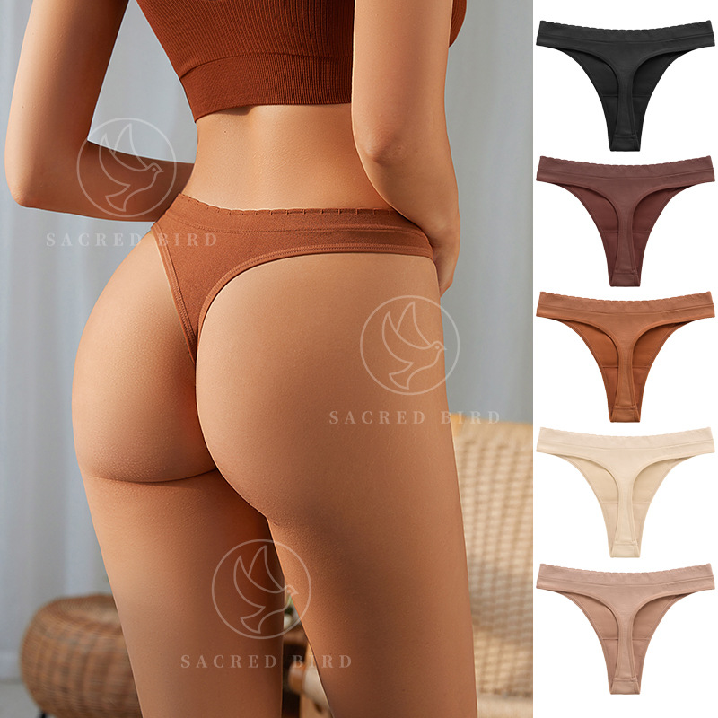 个性金属环细带大码跨境无痕一片式内裤 性感t型女士纯棉裆丁字裤