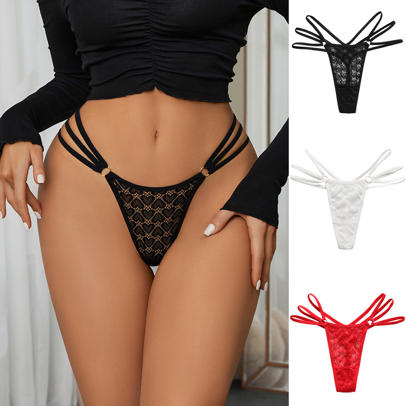 性感细带一根绳T型免脱情趣内裤 欧美大码透视蕾丝火辣女士丁字裤