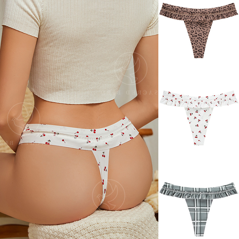 性感豹纹T裤无痕一片式丁字裤纯棉裆冰丝女士内裤批发速干欧美风