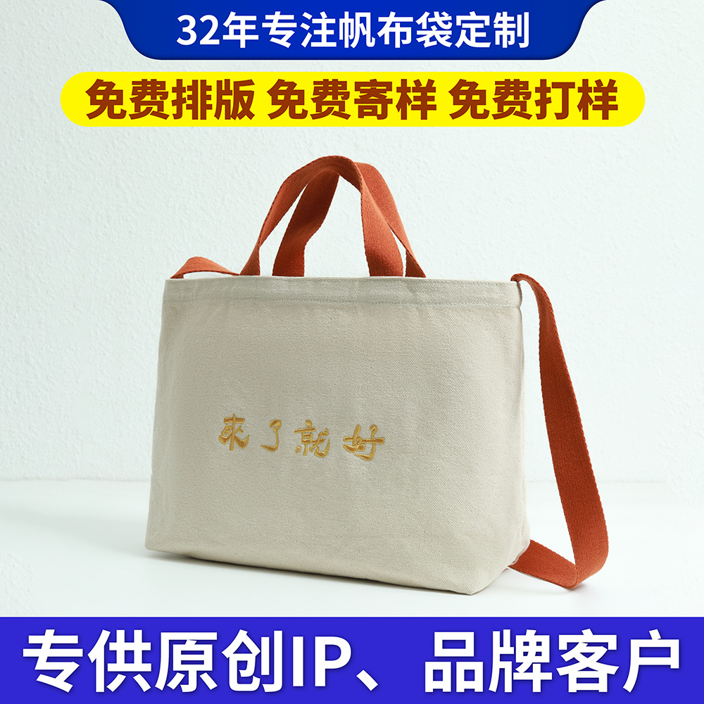 定制高级感刺绣手提袋托特包文艺印字帆布袋手提挎肩帆布定做logo