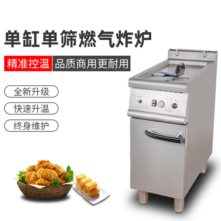 外贸专供商用单缸单筛燃气炸炉连柜座大容量油炸锅炸鸡排鱼油条机