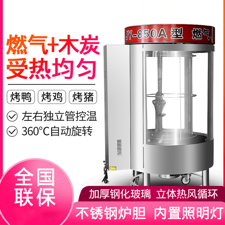 850A优质立式燃气木炭烤鸡炉 旋转烤鸭炉 商用双层钢化玻璃烤鸭H