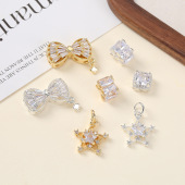 轻奢镂空铜镶锆石蝴蝶结五角星通孔隔珠diy发饰手链挂件材料批发