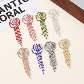 跨境时尚水钻花瓣流苏耳饰服饰配件镶钻吊坠配饰手工装饰材料批发