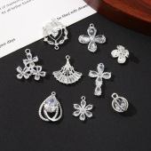 厂家现货白色系耳饰吊坠挂件 闪亮diy水滴五瓣花串珠手链项链材料