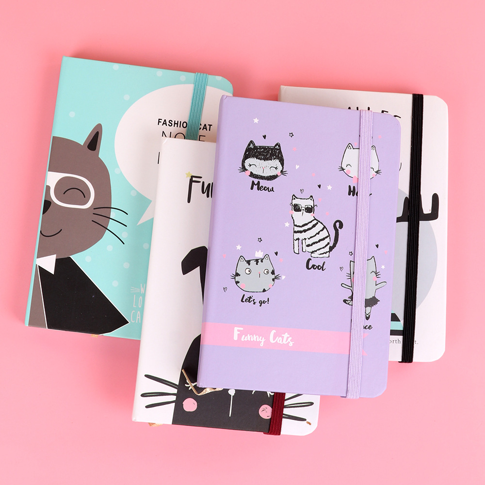 卡通猫学生日记本迷你小记事本礼品礼物绑带设计口袋本随身笔记本