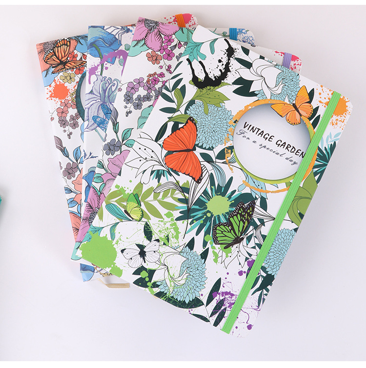 蝴蝶花学生绑带设计本创意潮流笔记本日记本记事本手帐本跨境现货