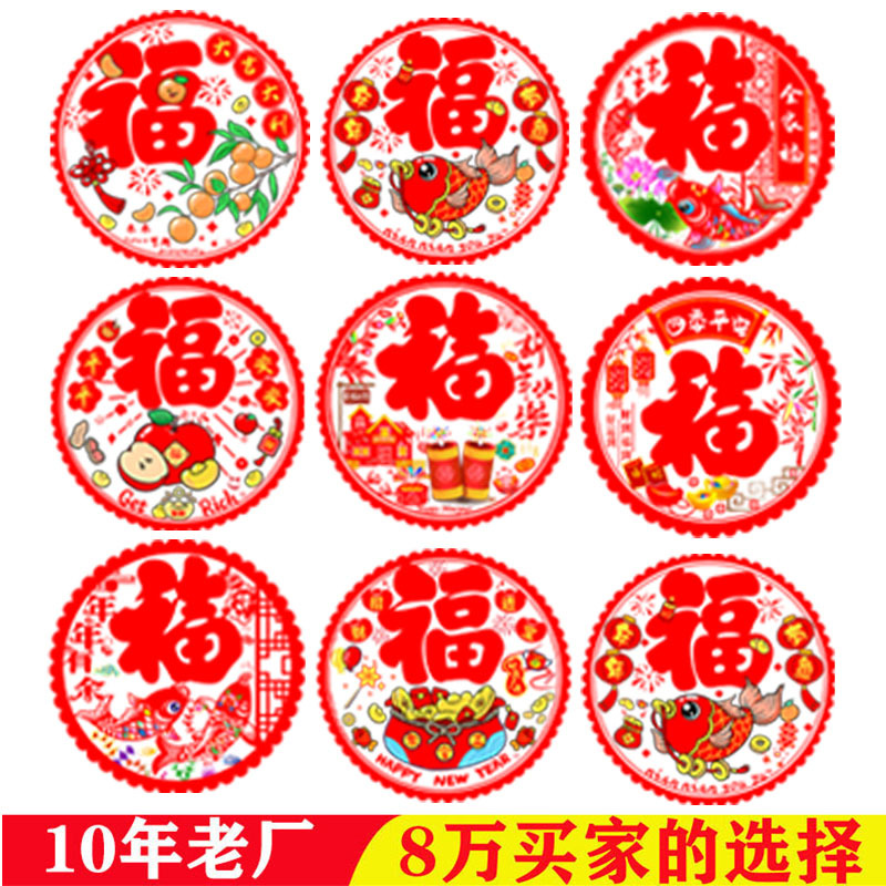 2026新款七彩高档植绒生肖窗花福字玻璃贴过年窗花春节装饰批发