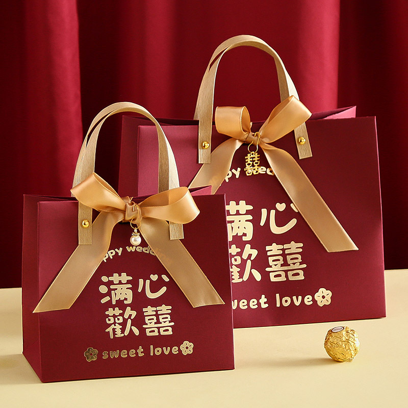 新款高档中式喜糖袋结婚手提礼物袋蝴蝶结丝带伴手礼盒糖果袋批发