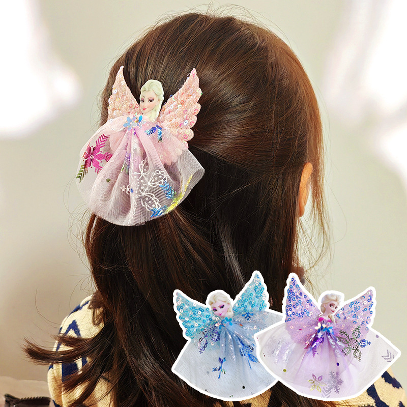 冰雪奇缘爱莎公主发夹 可爱亮片翅膀儿童发卡网纱公主裙头饰发饰