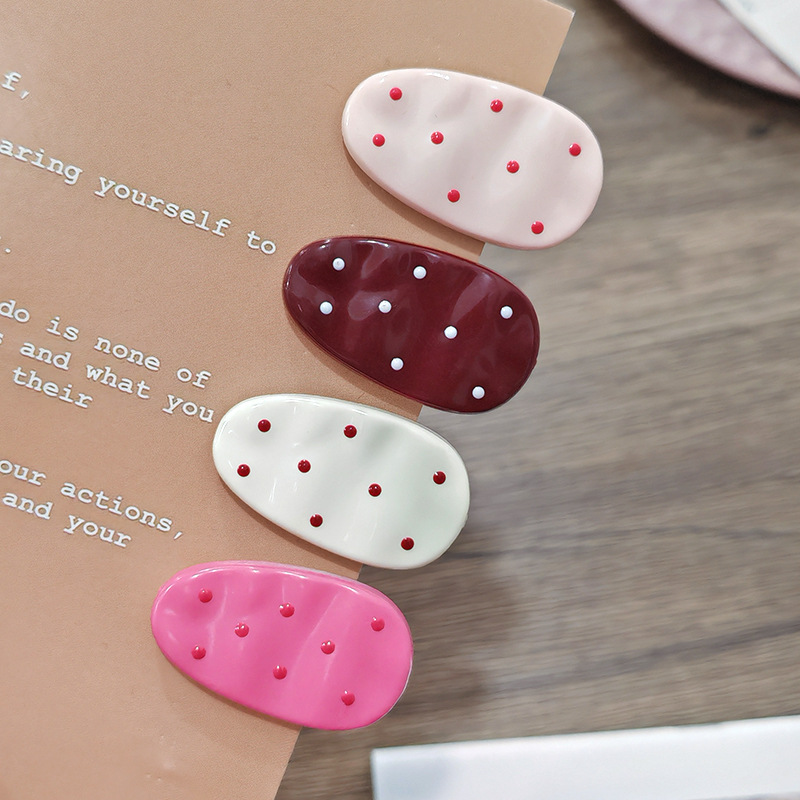 可爱波点水滴型椭圆发夹ins少女海边百搭侧边刘海夹发卡发饰头饰