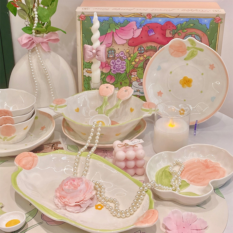 奶呼呼法式风碗碟套装家用高颜值ins风陶瓷饭碗餐盘碟子组合碗盘