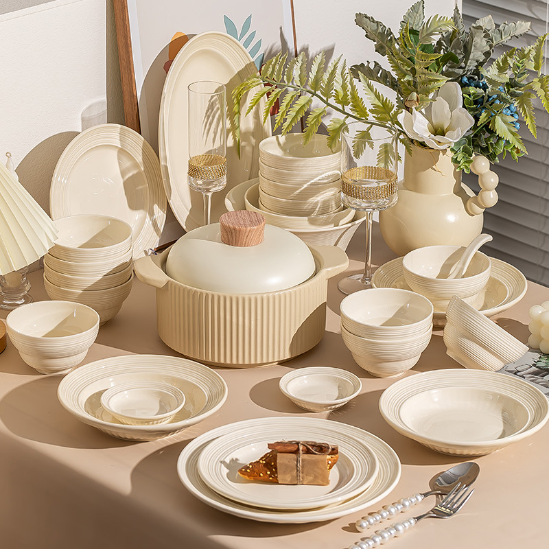 新款奶油风陶瓷餐具套装ins风家用高颜值碗碟盘全套组合碗具套装