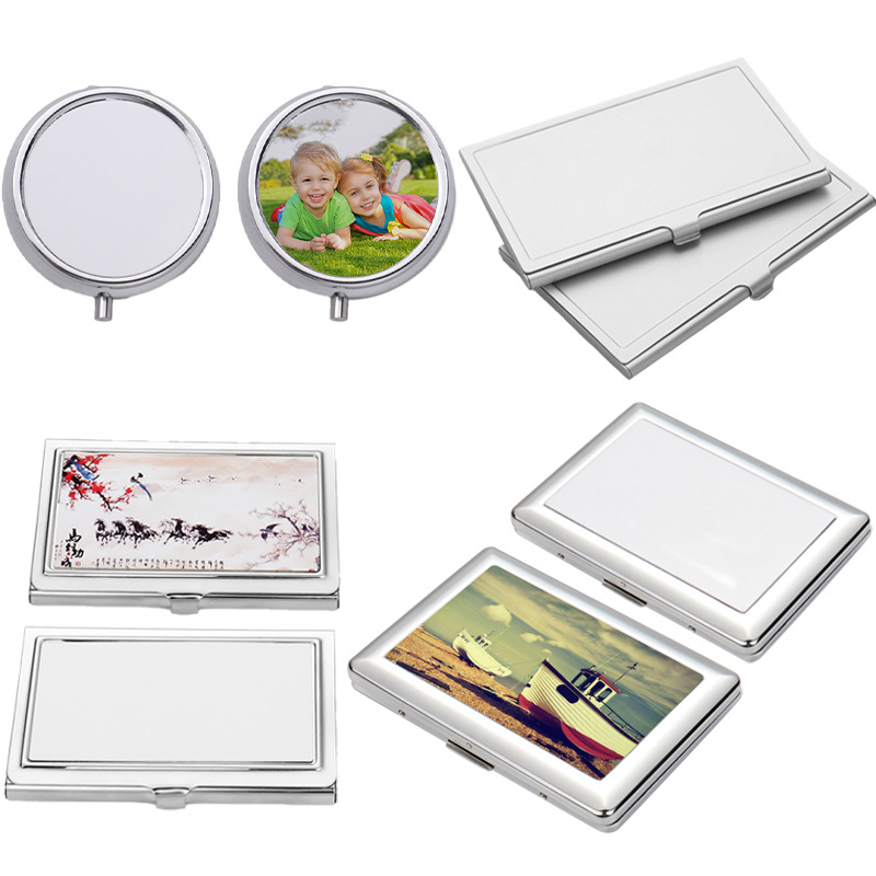 跨境亚马逊弧形化妆镜热转印可印图片双面便带补妆美容小镜玻璃镜