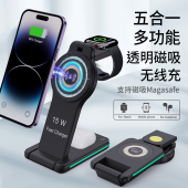 三合一透明磁吸无线充电器适用苹果手表手机耳机充电支架带小夜灯