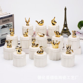 欧式陶瓷工艺摆设桌面首饰戒指盒金色动物手饰项链防尘软装储物罐