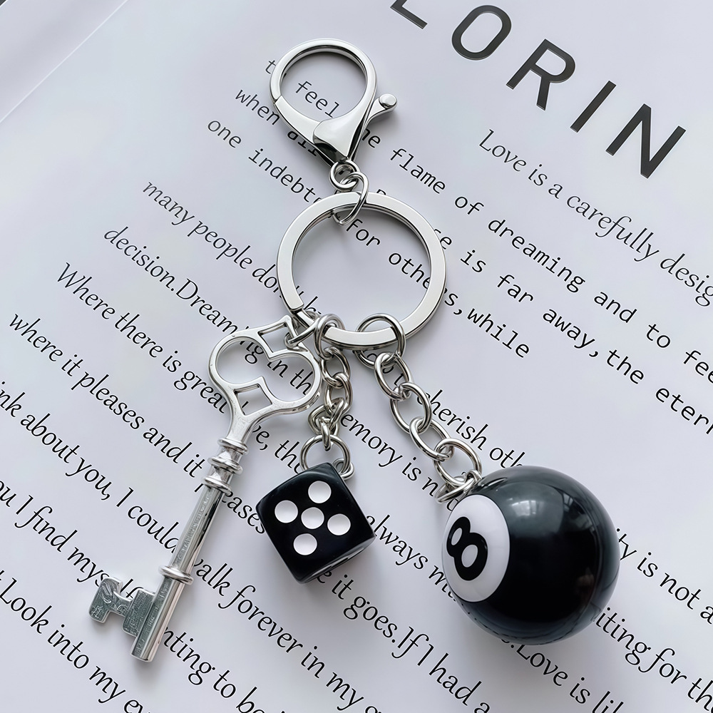 跨境亚马逊骰子饰品挂件黑八台球钥匙扣桌球包包扣装饰小挂件饰品