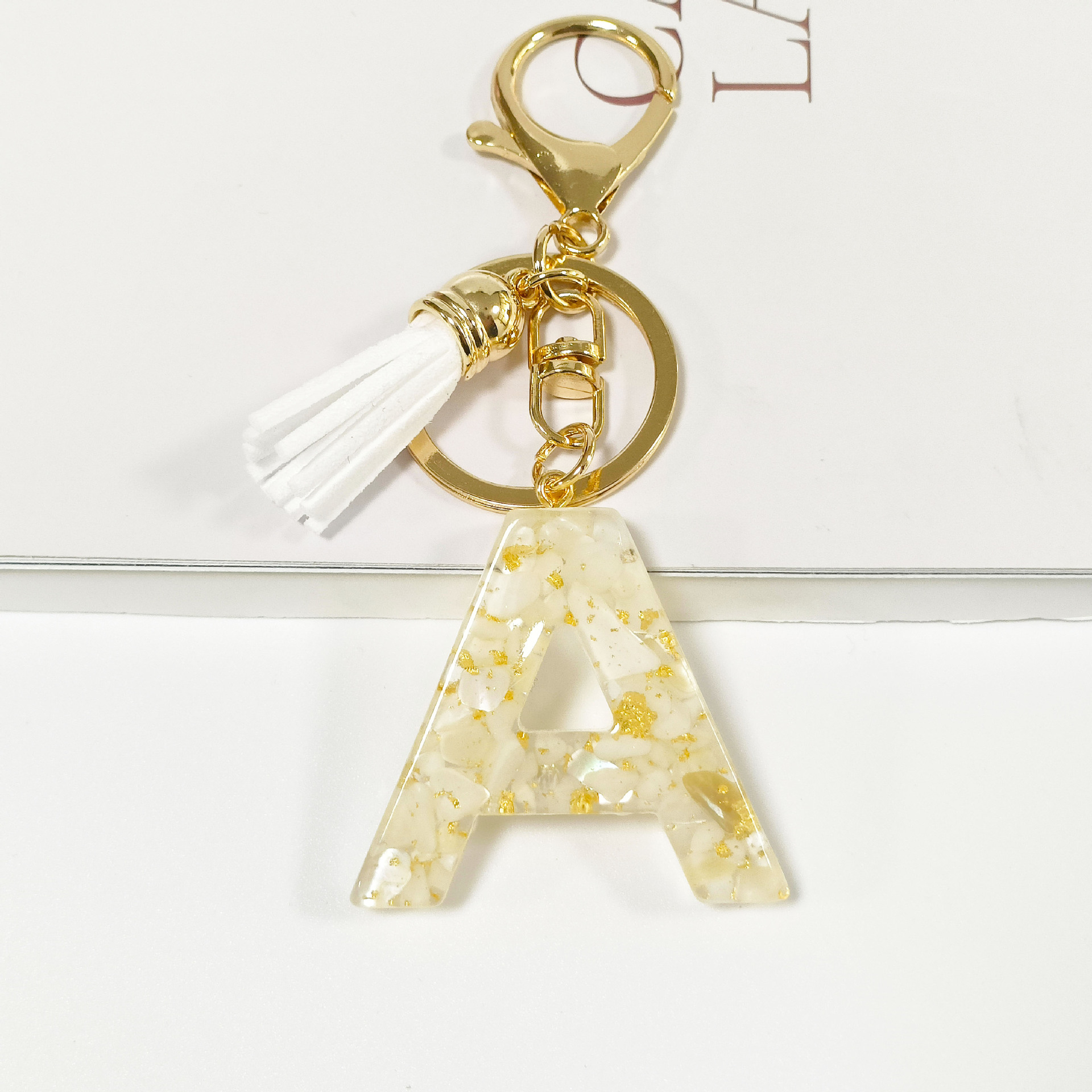 跨境新品贝壳石头搭金箔字母钥匙扣 diy树脂滴胶钥匙链包包小挂件