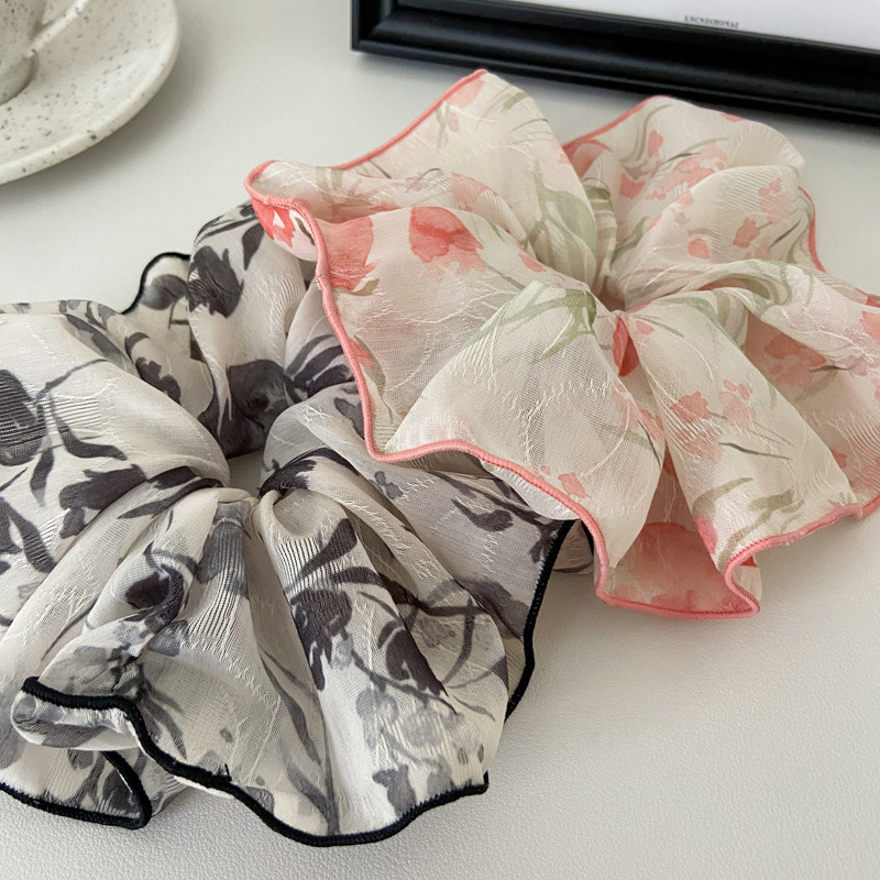 韩系小碎花针织大肠发圈高级感印花发绳复古气质马尾皮筋头绳头花