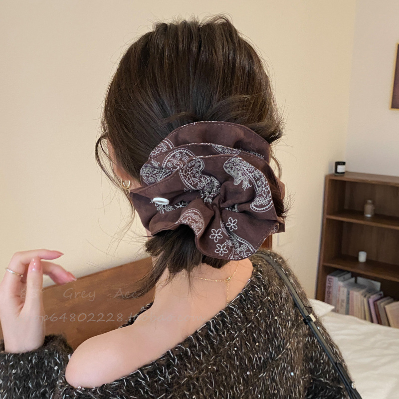 复古气质美拉德豹纹方巾大肠发圈女小众设计高级感头绳时尚发饰品