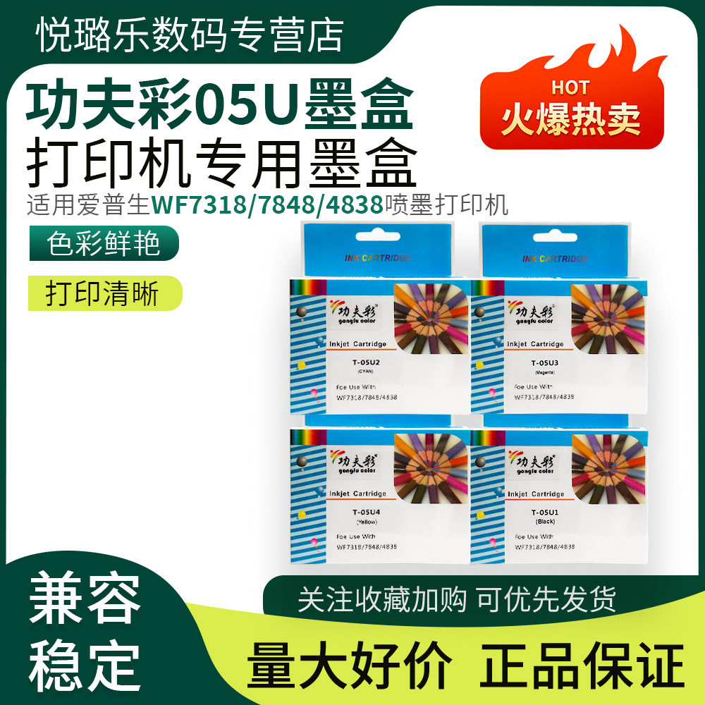 功夫彩05U 05N四色墨盒适用于爱普生WF7318/7848/4838打印机墨水