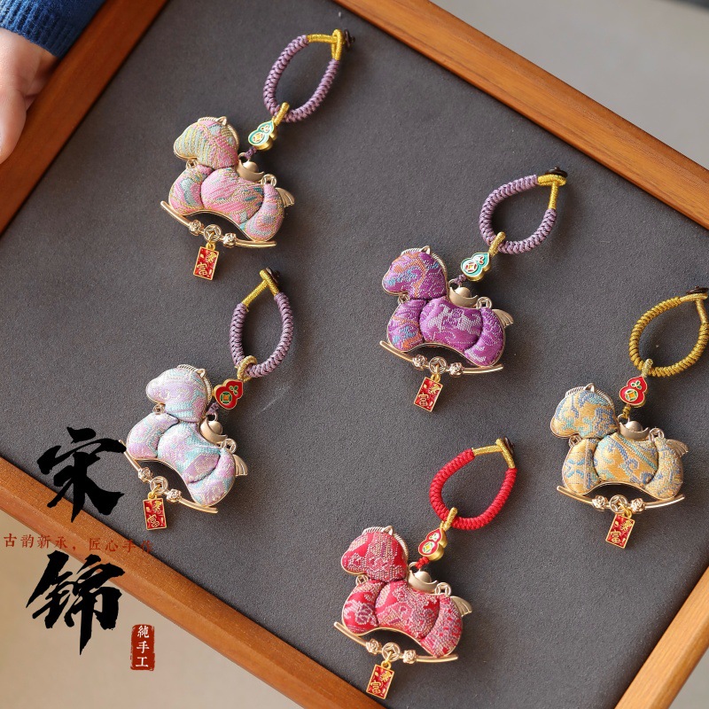 新款小马钥匙扣 宋锦小马 宋锦汽车挂饰马上有钱可爱包挂男女同款