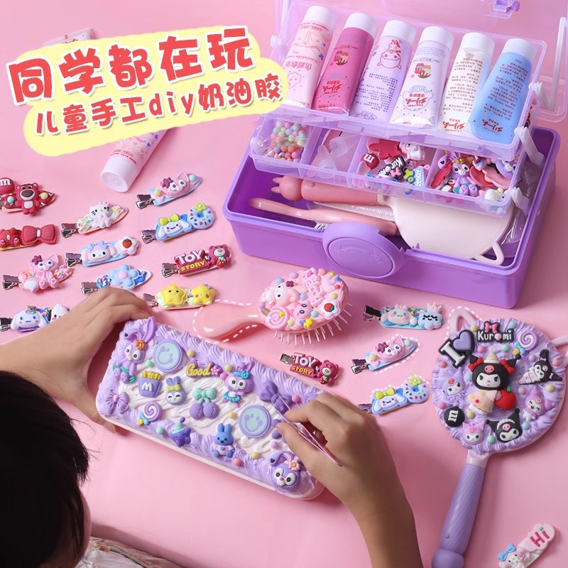 女童手工儿童奶油胶镜子diy化妆镜装饰小镜子梳妆镜自制改造材料