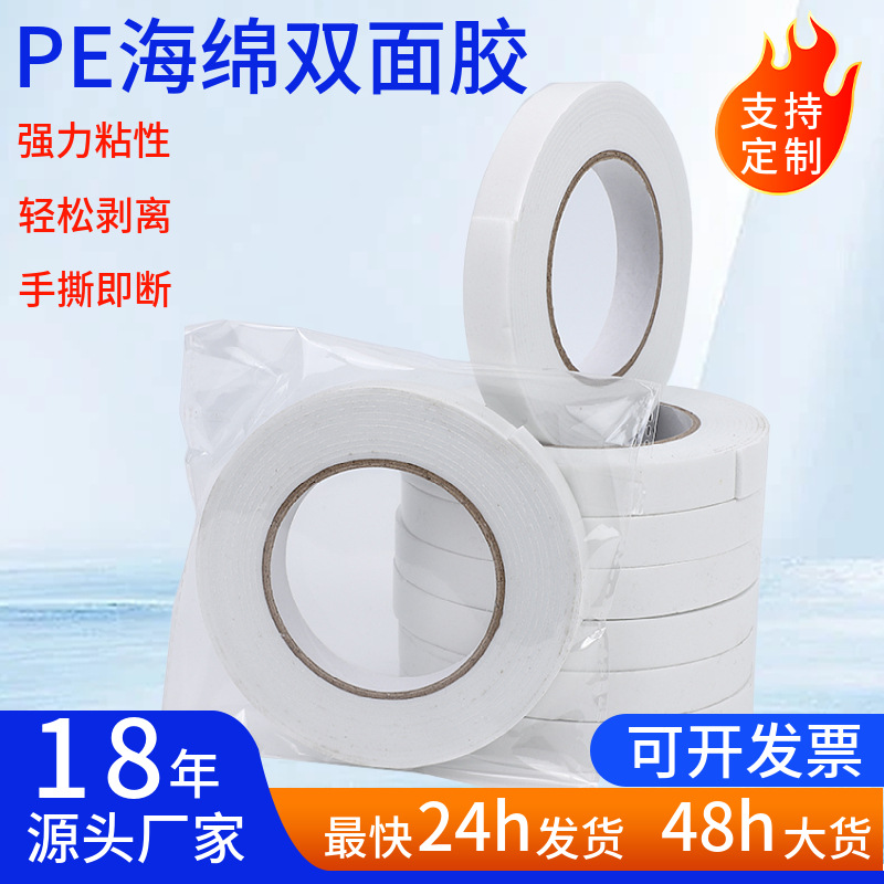 厂家批发直销泡沫胶白色PE海绵双面胶防水双面强粘亚克力高粘度