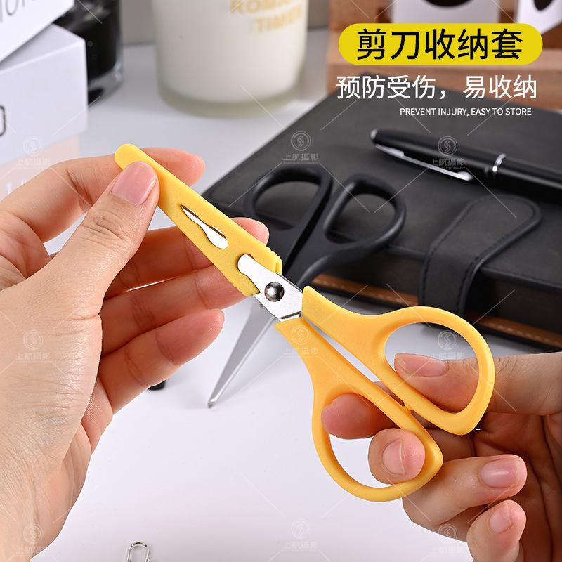 工厂批发带保护套小剪刀学生手工剪线头剪家用不锈钢直头儿童剪刀