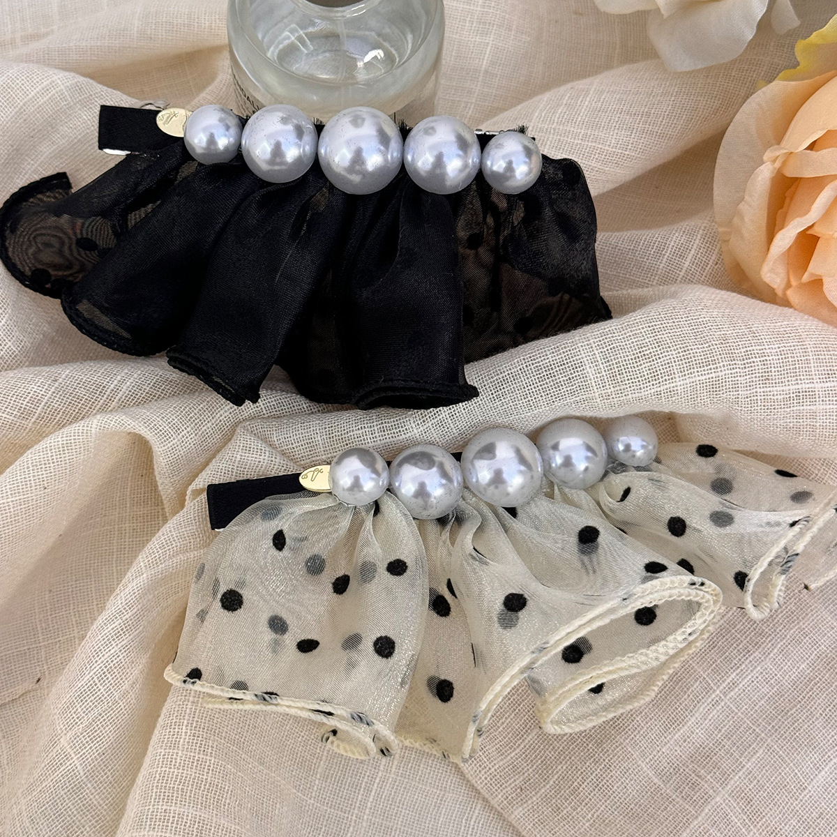 少女甜美波点蕾丝裙摆发圈韩国头绳超大网纱大肠圈轻奢时尚发绳女