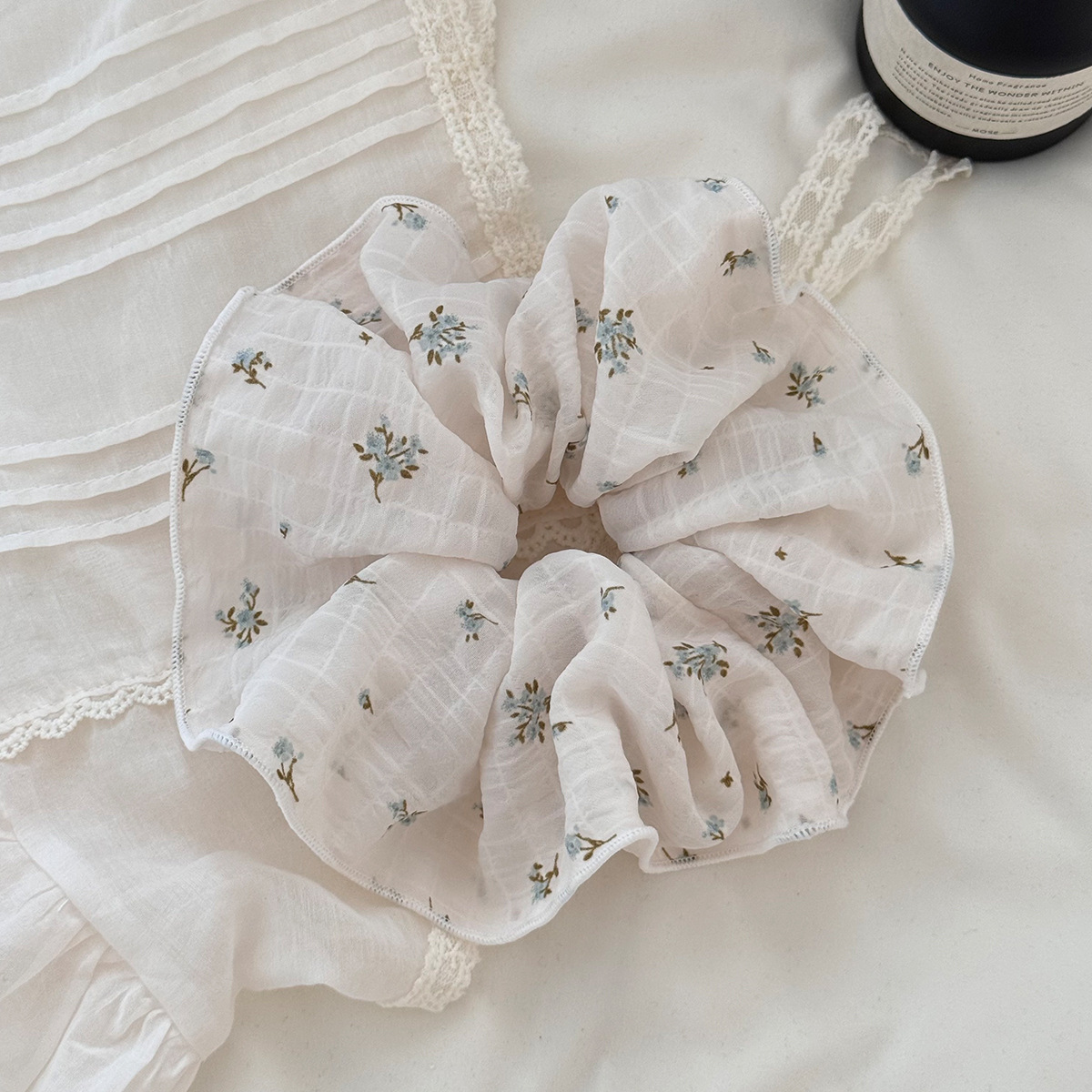 浅蓝碎花布艺大肠发圈文艺复古少女发绳气质马尾头绳百搭清新头花
