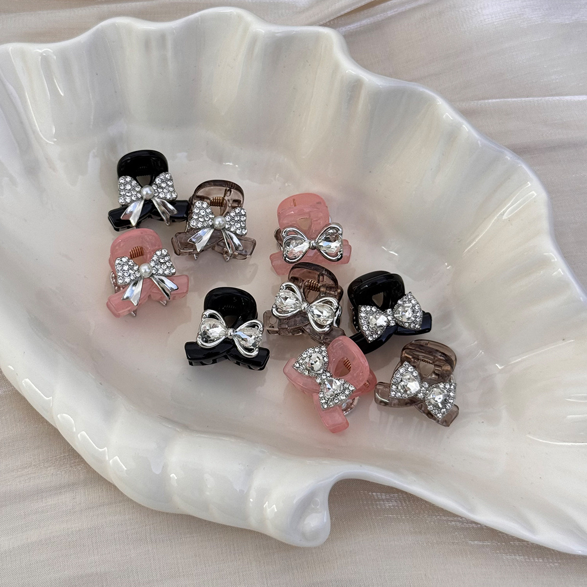 蝴蝶结水钻迷你小号抓夹女2025新款后脑勺半扎发气质鲨鱼夹子发饰