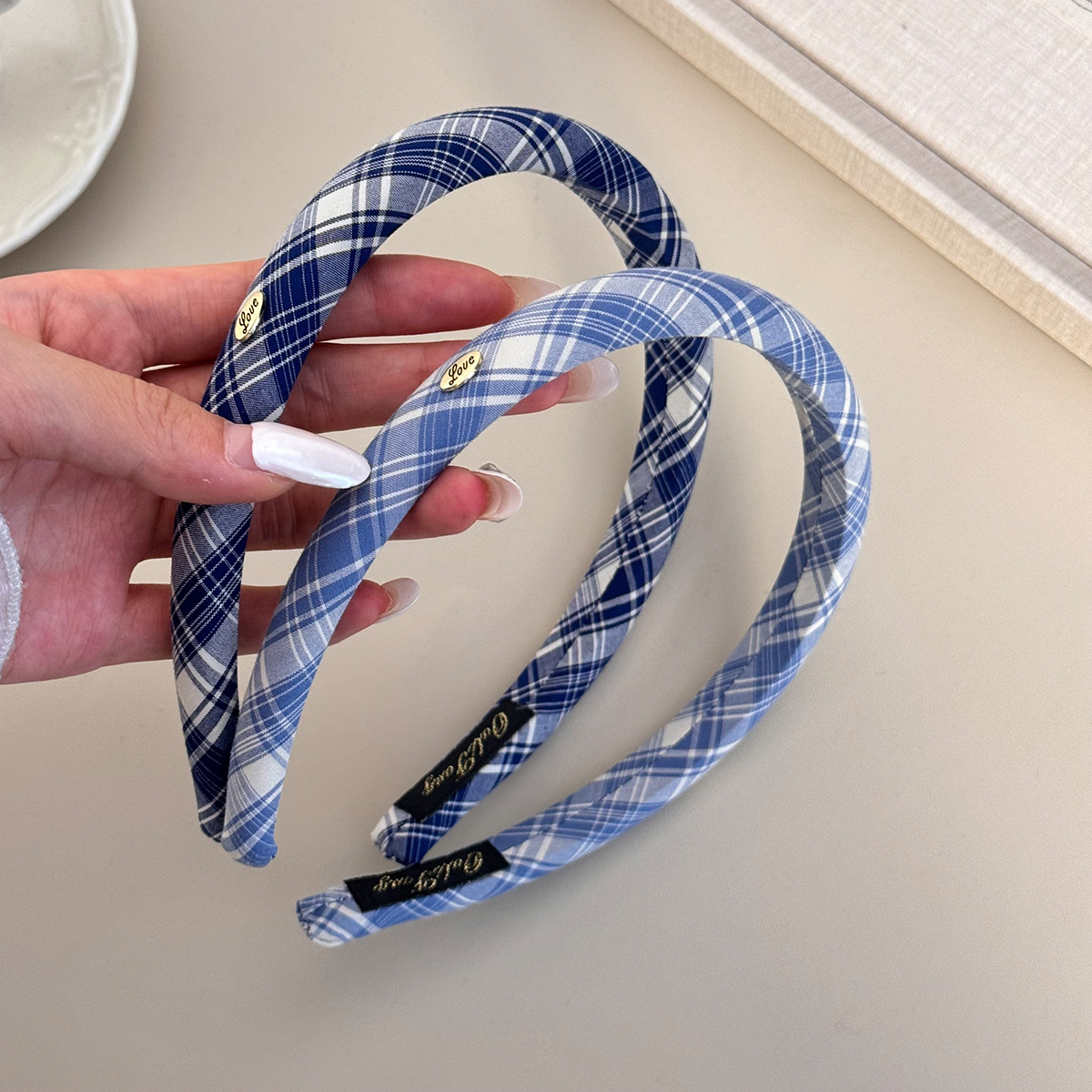 美式复古学院格纹发箍甜美百搭椭圆金标头箍少女感海绵高颅顶头箍