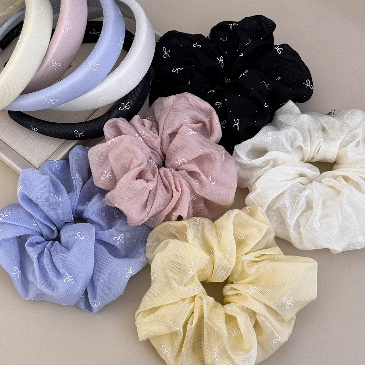 韩版设计感蝴蝶结日常慵懒感发箍简约奶油色大肠圈百搭发饰头饰品