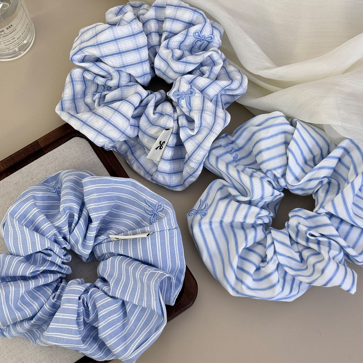 梦幻蓝色条纹大肠发圈韩系夏天2025新款森系发箍时尚扎低丸子头绳