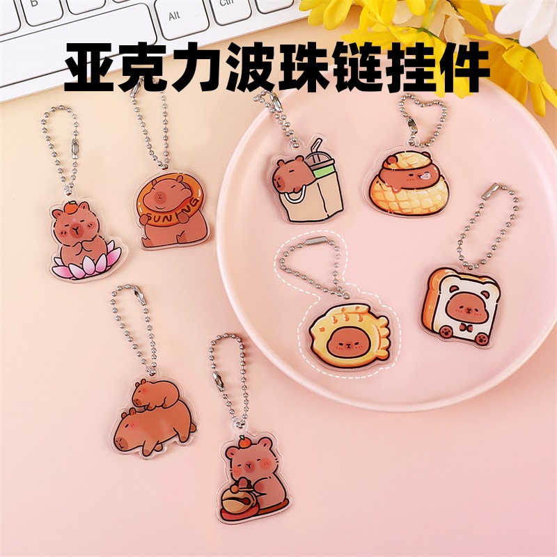 亚克力可爱卡皮巴拉钥匙扣网红卡通水豚包包挂件波珠链学生小礼品