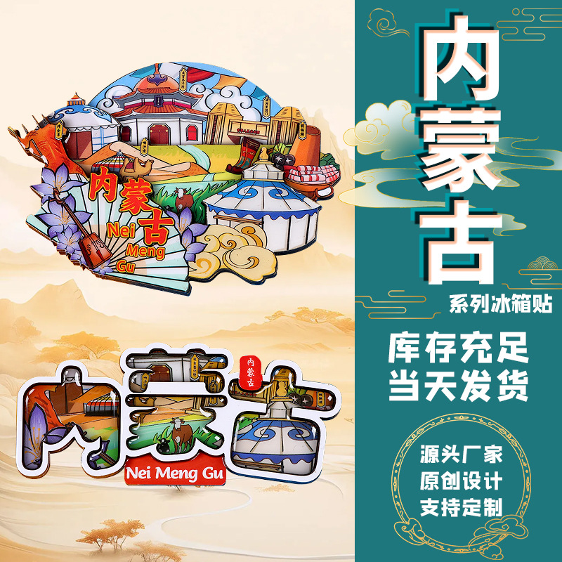 内蒙古木质滴胶冰箱贴文字扇子形磁吸贴景点纪念呼和浩特旅游文创