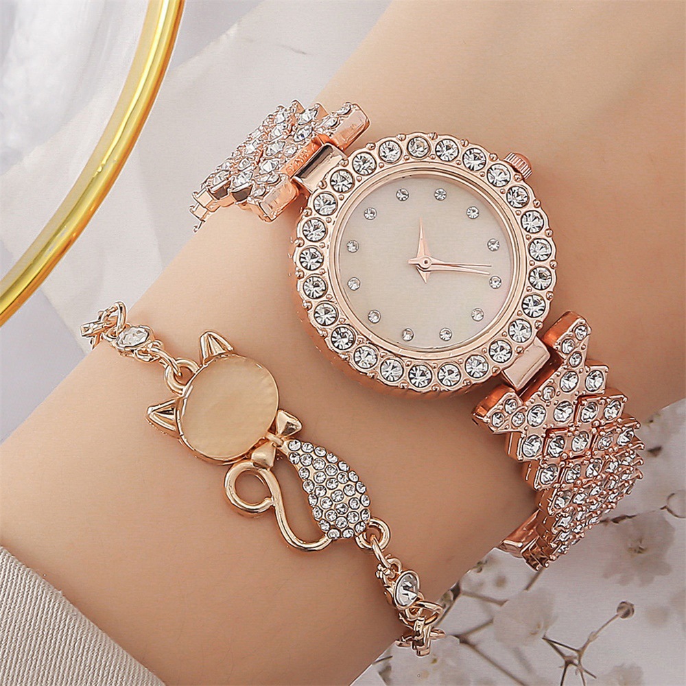 新品Wish跨境爆款镶钻女表满钻石英表水钻刻度女士手链表套装