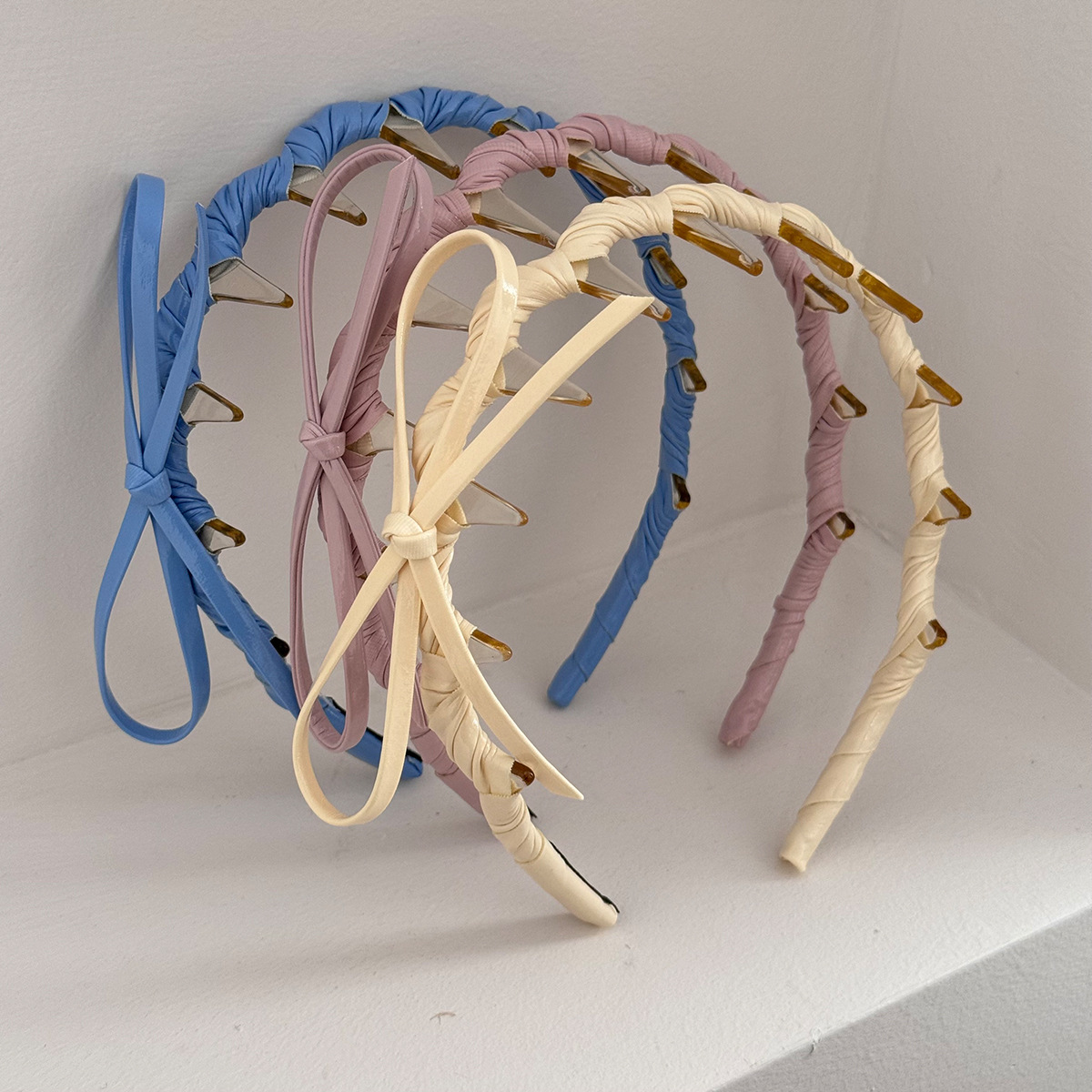 韩国夏季新款皮质带齿波浪发箍纯色侧边蝴蝶结头箍2025百搭高颅顶