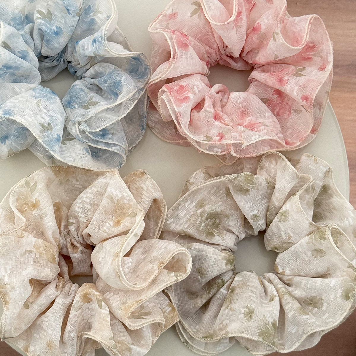 森系碎花大肠发圈女2025新款韩系温柔高级感褶皱发绳大号头绳头花