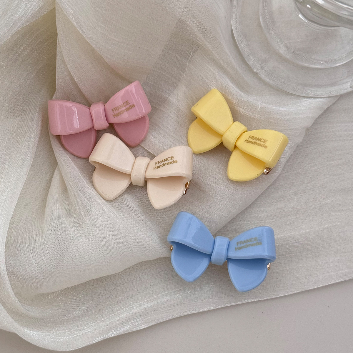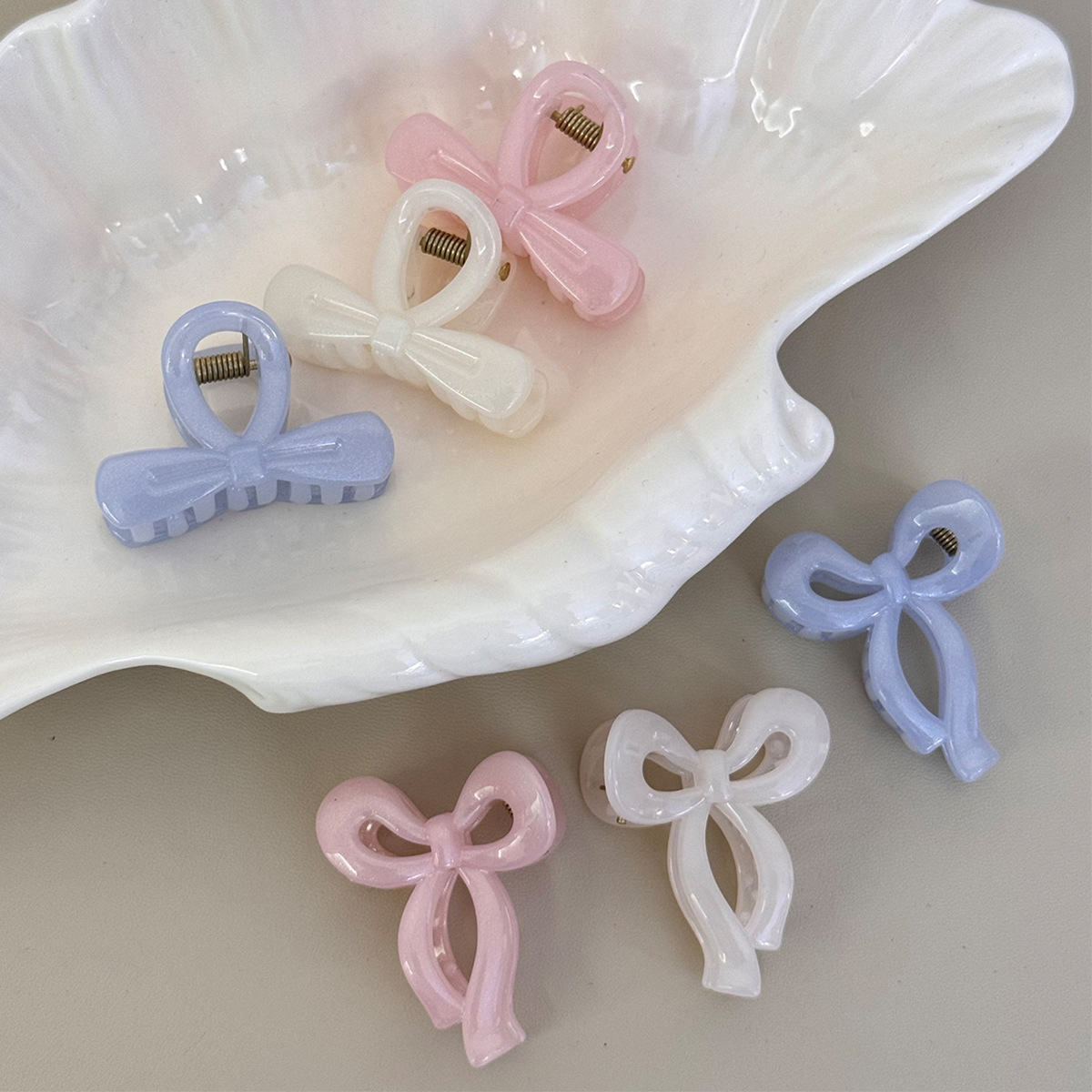韩国新款甜美质感彩色不对称蝴蝶结发夹后脑勺抓夹鲨鱼夹发饰女生